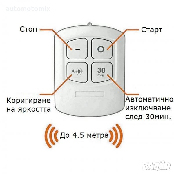 Таймер за изключване след 30 минути с дистанционно управление.