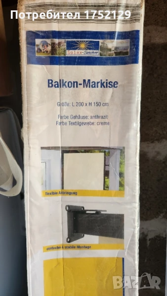 Странична Тента купен от Германия ама неможах да го ползвам понеже променихме плановете си и постройката. Тентата си остана на рафта да прахосва