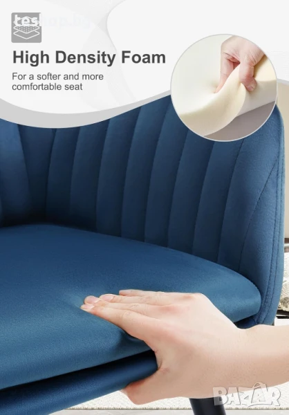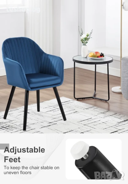 Противоплъзгащ се акцентен стол: Всички крачета са снабдени с противоплъзгаща се подложка, което прави стола неплъзгащ се и стабилен, предпазва пода от надраскване и намалява шума при движение.