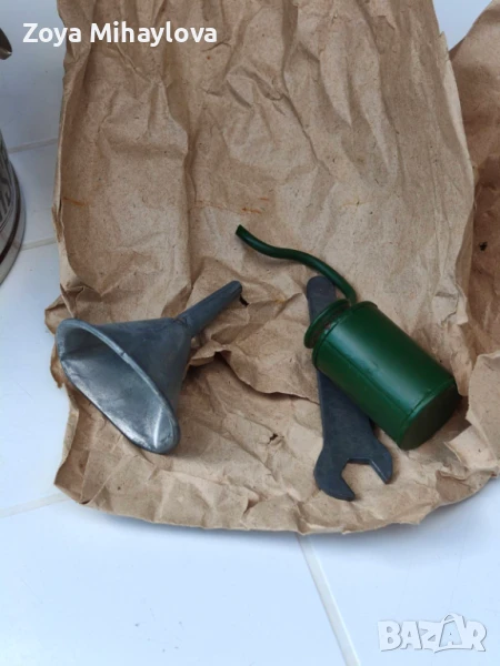 Всички оригинални части и аксесоари са налични и в перфектно състояние, включително фунията, ключът и масльонката, както и оригиналната картонена кутия.