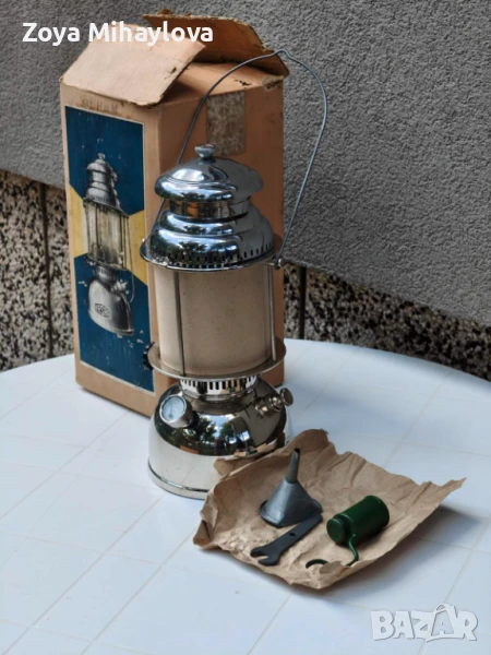 Предлагам рядка и ценна за колекционери петромакс лампа HASEG, модел 565/100. Лампата е в безупречно, чисто ново състояние и никога не е била палена. Това е изключителна находка за ценители на класическо къмпинг оборудване и стари лампи.