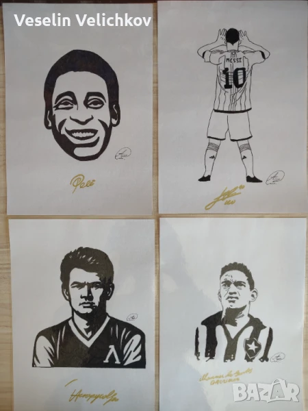 Ръчно рисувани и оцветени рисунки на футболисти и известни личности