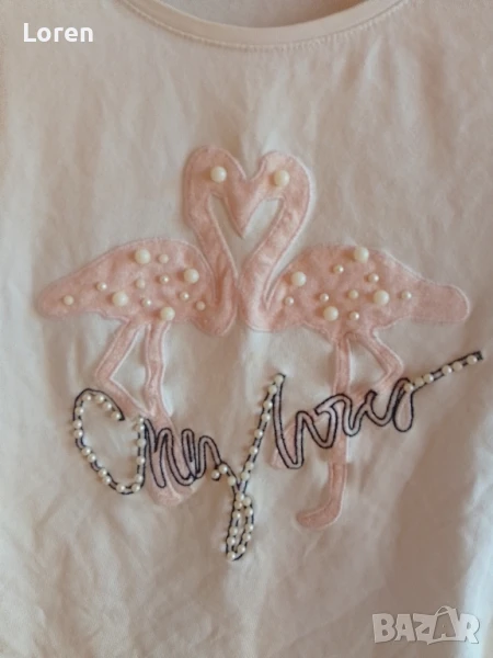 Подарявам!Дамска блузка с фламингота и перлички → Обява 51386135