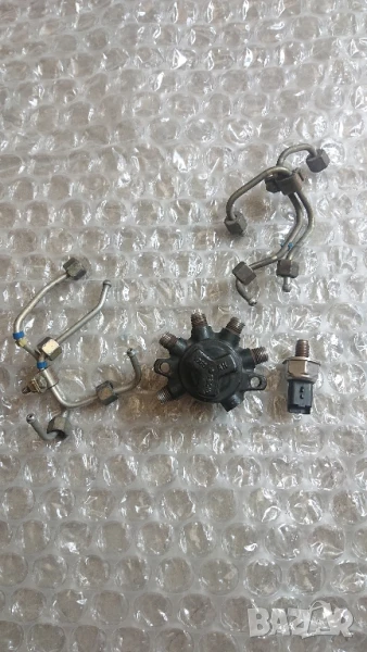 Горивен разпределител DELPHI R9144Z020C-1S4Q9D280AC. Датчик високо налягане DELPHI 9307Z507A-55PP0301.Горивни тръбички за свързване на горивния разпределител с дюзите.Свалени са от работещ автомобил форд фокус 1,8 115к.с.ТДЦИ 2002година. Цената е за всичко. Може и по отделно.
