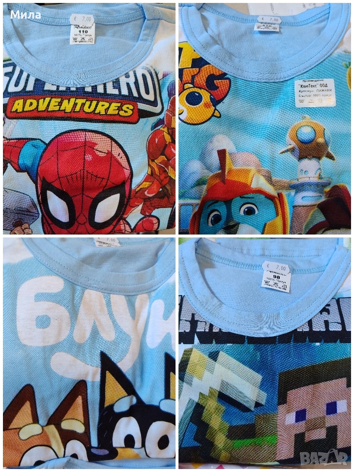 Детски пижамки с дълъг ръкав, български, 100% памук, размери от 98 до 116, цена 7,50€