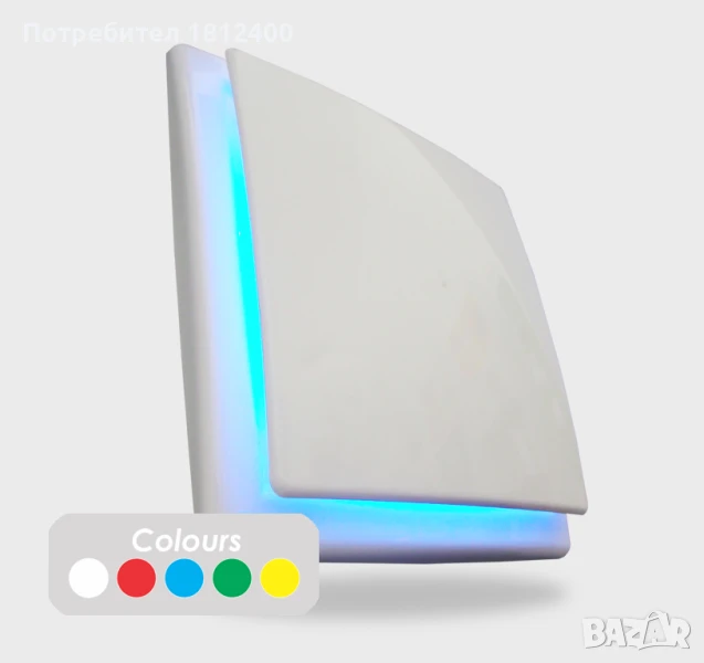 Вентилатор за баня светещ син LED фи 100 с клапа тих влагоуст. ММоторс
