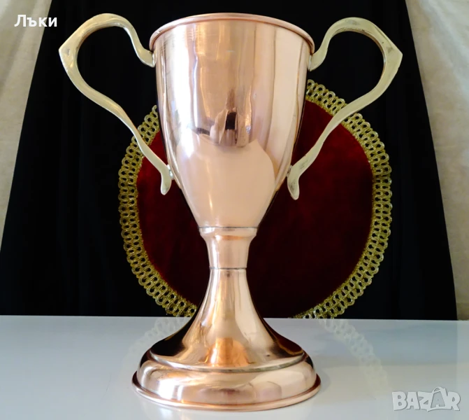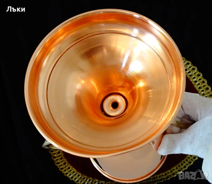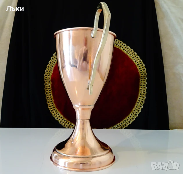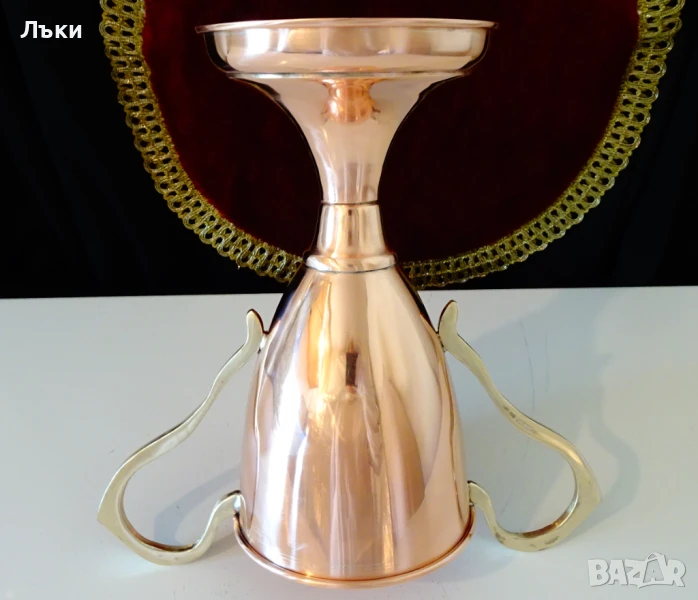 Старинен меден бокал за вино,медна чаша на столче,медна