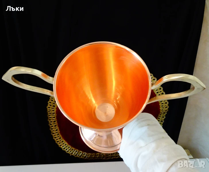 блясък.Има две стабилни дръжки релефно отляти от масивен златен бронз.От вътре