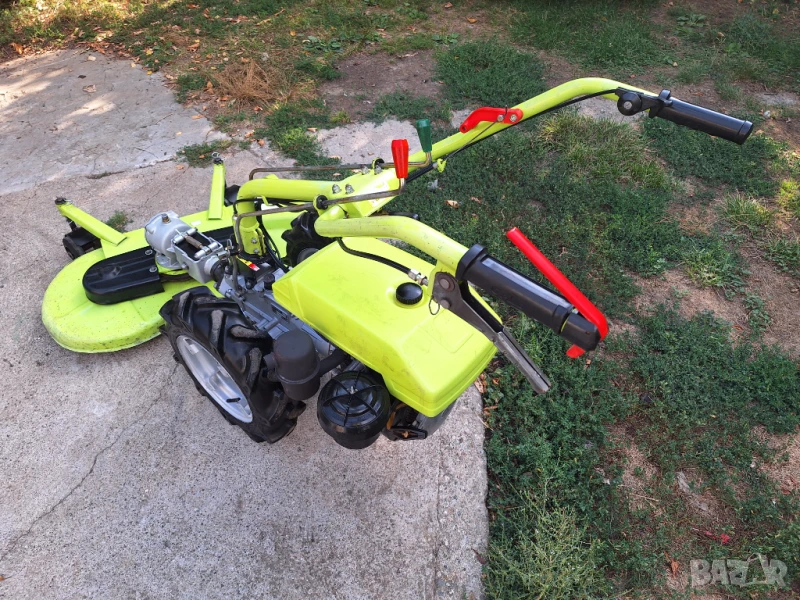 роторна мулчираща тава с палцова косачка Grillo + фреза, 3 предни и 1 задна скорости. Двигател Lombardini, 10к.с. бензинов, 4-тактов. 115см нож за косене, 110см мулчираща тава със странична изхвърляне. Отлично функциониращи двигател, скорости и косилени апарати. Професионална от най-висок клас. Най - доброто от този тип сенокосачки. Изключително подходяща и за планински, наклонени и лоши райони. Лека и удобна. Събира се в туристическо ремарке и във всякакъв автомобил при сгънато положение. Ширина на ножа за косене 115см. , височина с дръжките около 90см. , дължина с дръжките около 150см. Не е ползвана в България, напълно нов внос от Италия. Изправна, пали от раз, намира се в гр. Кюстендил и може да се види по всяко време. Цената е 2000 евро и е без коментар.