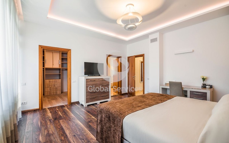 4 спални, всяка със собствена баня, гардеробно помещение и балкон - на 2-ри и 3-ти етаж;