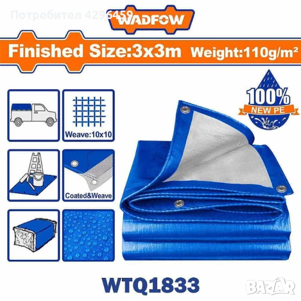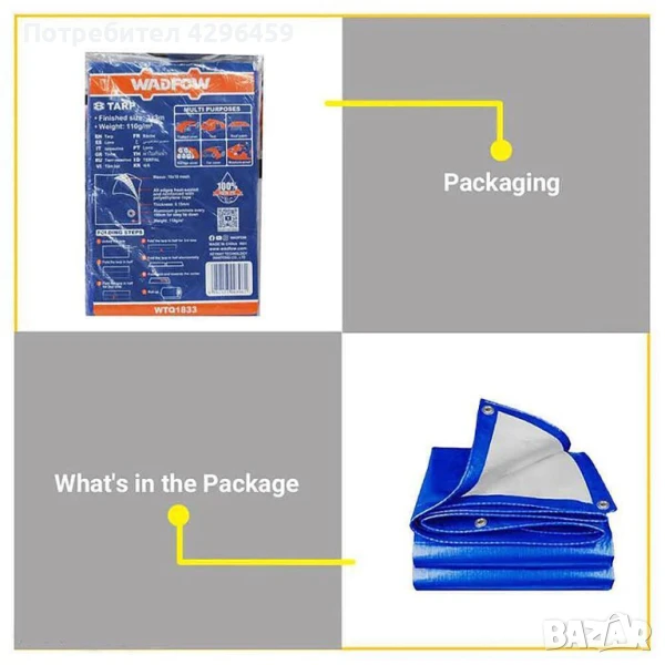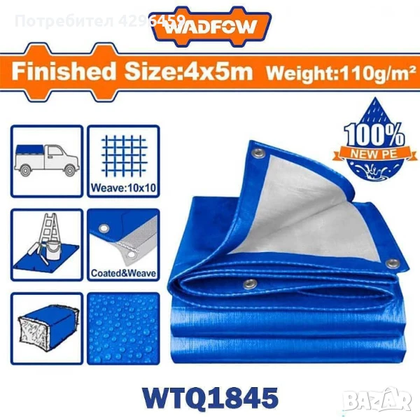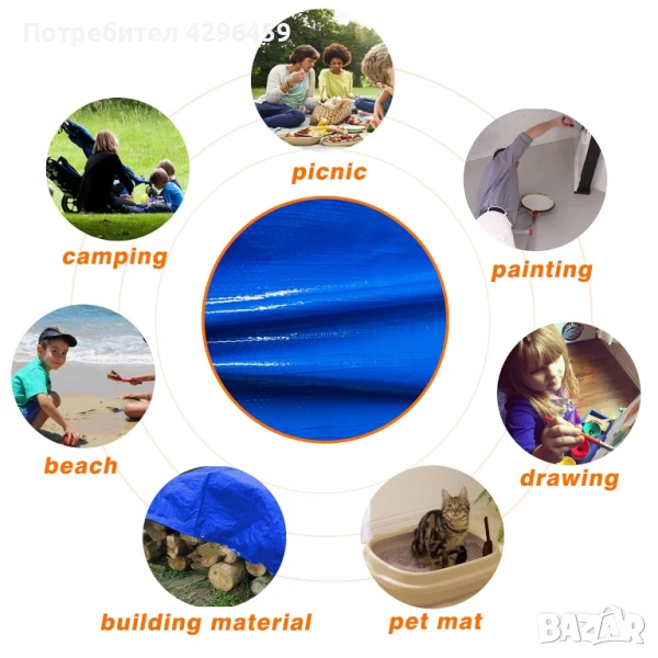 Платнище или тента/покривало от полиетилен, предназначено за универсална употреба в домакинството, селското стопанство, градинарството, както и в транспорта и строителството. Снабдено с алуминиеви капси на всеки 100 см за лесно завързване. Водо- и прахоустойчиво, с UV защита.