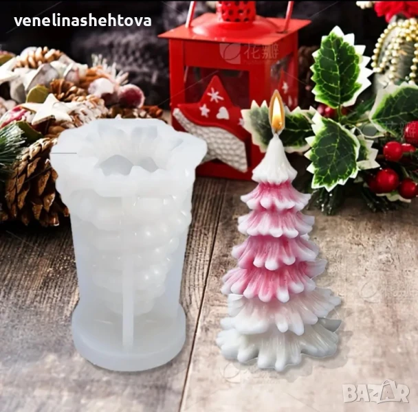 3D Елха Силиконов молд форма за свещи гипс сапун смола фондан КОД 4365 → Обява 51389125