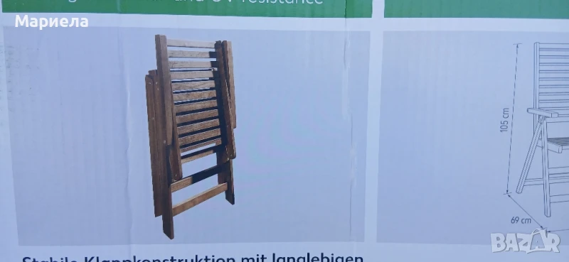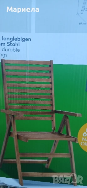 Сгъваем стол с висока облегалка От байцвана с масло акациева дървесина с голяма устойчивост на атмосферни влияния и ултравиолетово лъчение Стабилна сгъваема конструкция с дълготрайни фитинги от поцинкована стомана Задната облегалка се регулира в 6 позиции Изцяло монтиран готов за използване веднага Размери (Ш х Д х В): 56 x 69 x 105 cm Цвят: естествен, байцван с масло Максимално натоварване: 110 kg Вкл. упътване за употреба Предназначена само за частни жилищни помещения Произход Виетнам.