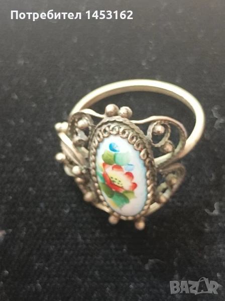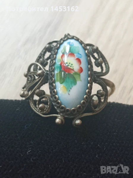 Предлагам красив руски пръстен от мелхиор и ръчно рисуван порцелан