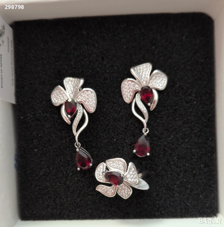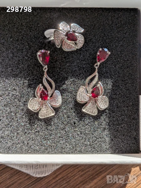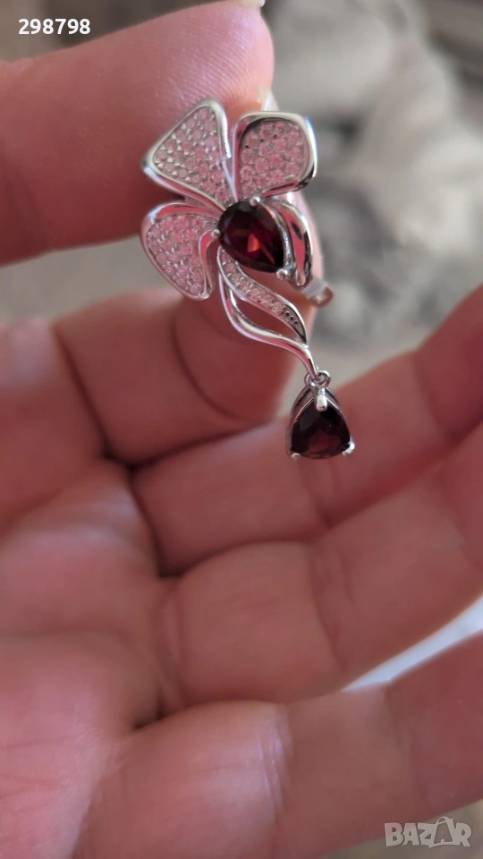 Сребърен комплект с естествен гранат → Обява 51389489