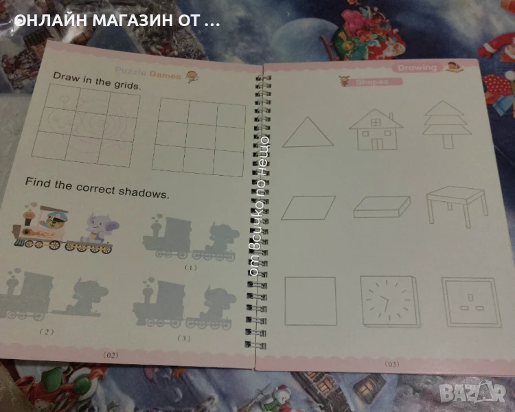 Комплектът включва в себе си 4 броя тетрадки, всяка от тях на различна тематика – с едната се изучават буквите, с втората цифрите, с третата смятане, а с четвъртата – рисуване. Към комплекта има и 6 броя писалки както и 24 шаблона с който детето ще може да рисува най различни фигури и рисунки