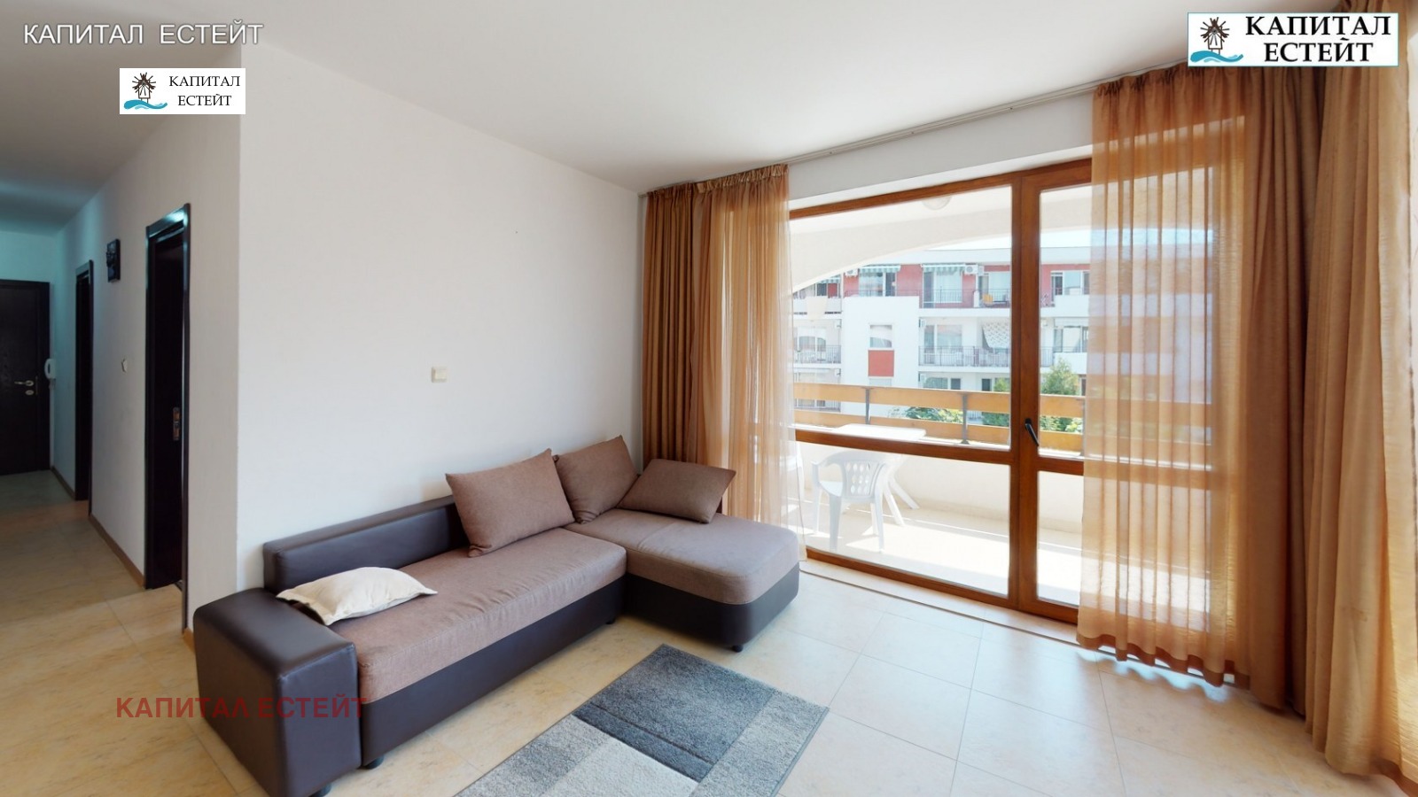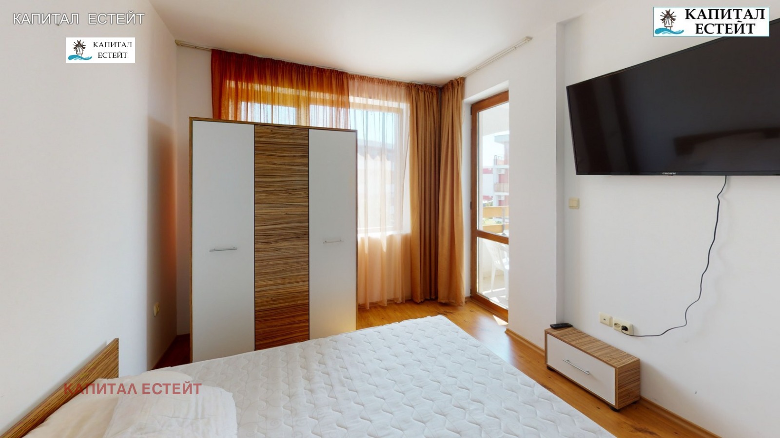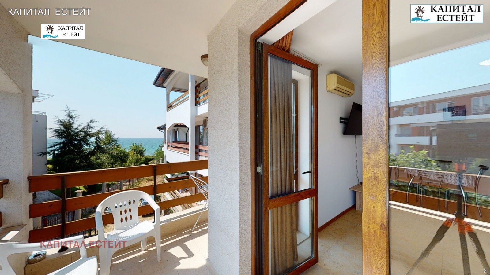 Представяме на Вашето внимание новото ни предложение за покупка на отличен ваканционен апартамент (обща площ 89,71 кв.м., застроена 82,07 кв.м.) в Робинзон Бийч, к.к.Елените. Преимущество на описвания 3-стаен апартамент е топ локацията на комплекса на първа линия море. Предлаганият от нас апартамент е разположен на етаж 2-ри етаж над партера (трети на сградата) и се състои се от: дневна с кухненски бокс, две спални, две бани с тоалетна, просторна тераса с гледка море, на която има излаз от дневната и едната спалня! Изложение на имота изток. Подови настилки и стенно покритие: под - ламинат; стени - латекс. Бани и тоалетни - теракота и фаянс, напълно завършени и оборудвани със санитарна керамика. Жилището се продава напълно обзаведено и готово за експлоатация, както се вижда в галерията към офертата. Разполага с кабелна телевизия и интернет. Снабден и ток, вода и канализация. Имотът е подходящ и за отдаване под наем. Архитектурата на комплекса е съобразена с вида на традиционните къщи от Българското възраждане. Сградата е завършена под формата на буквата 'Г' и се състои от 4 самостоятелни къщи, 7 жилищни входа (на всеки етаж има по два или три апартамента). Повечето жилища разкриват прекрасна панорамна гледка към морето и залива на Слънчев бряг. Тухлената сграда е завършена с хидро- и топлоизолация на покрива и фасадата, добре поддържани общи части със стълбища с под (гранитогрес/теракота) и стени с латекс, метални парапети и асансьор във всеки вход.