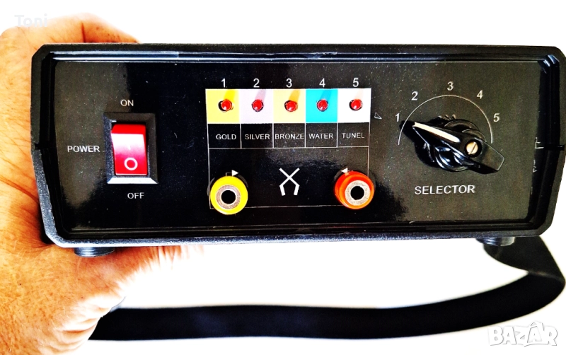 LRL - SKYLINE - long range locator for metal types: gold, silver, bronze, water and tunnels To select the desired type the operator has to press the button which causes the corresponding LED light to light up and start transmitting signal at resonance frequency.