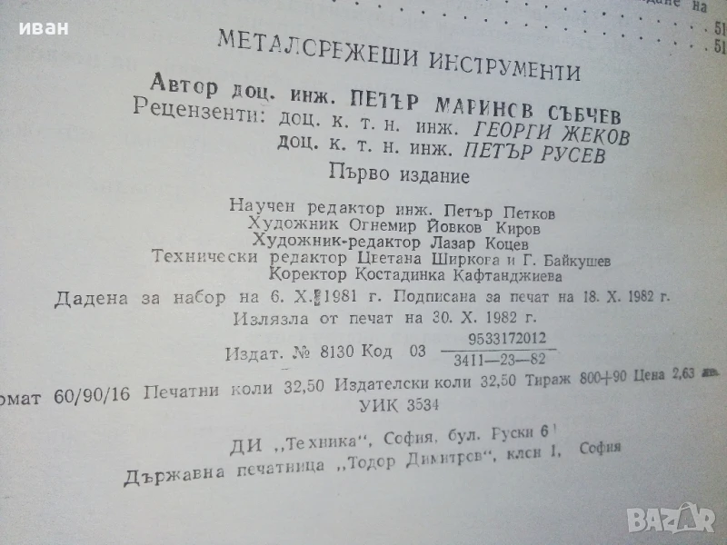 Металорежещи инструменти - П.Събчев - 1982г. → Обява 51391065