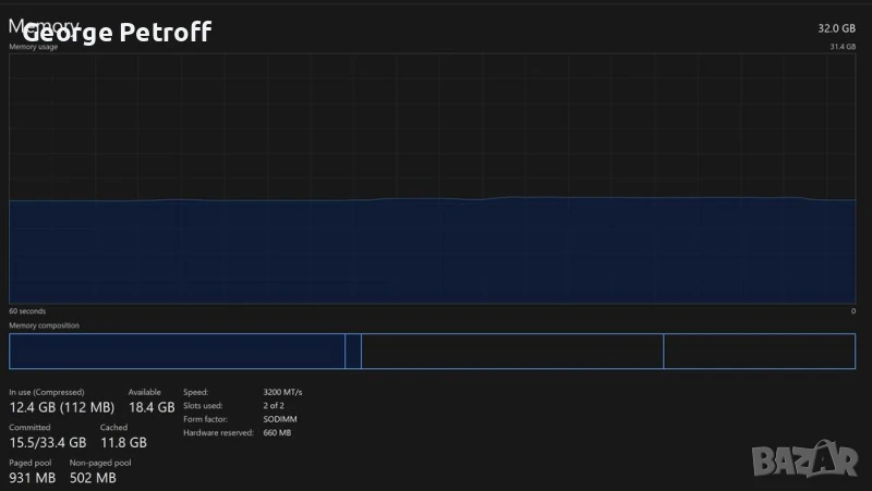 Здравейте, продавам личния си лаптоп Acer Nitro 5, който разполага с 32GB DDR4 ram памет, 4.5Т ssd, процесор AMD Ryzen 5 5600H и видео карта RTX 3060 6GB.