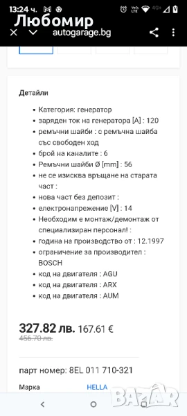заряден ток на генератора [A] : 120