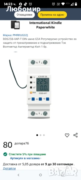 DDS238-VAP- 63A DIN шина Регулируемо устройство за защита от пренапрежение Волтметър Kwh 1 бр.