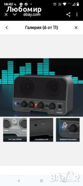 електрическа китара за упражнения.Освободете вътрешната си рокзвезда с мини китарния усилвател LEKATO! Bluetooth технологията ви позволява да свирите, където и да ви отведе музиката! Предимства на мини китарния усилвател LEKATO Изходна мощност: 5W. Този мини китарен усилвател има два тонални канала: Clean и Distortion, които могат да се превключват с един бутон.