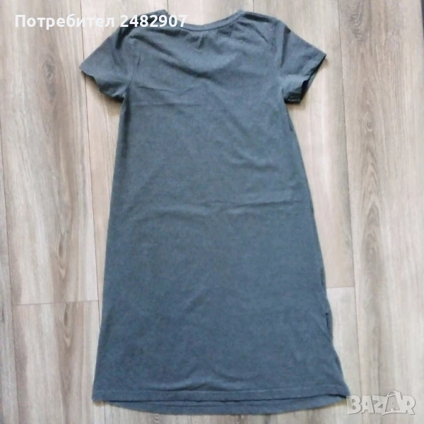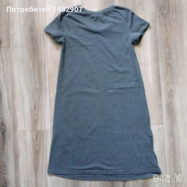 Сива дамска рокля, размер XS. Съдържа 100 % памук. Ширина в раменете - 34 см, ширина под мишниците - 41 см, ширина в долната част - 58 см, дължина от рамото до долу - 93 см, дължина на ръкава от рамото - 15 см, ширина на ръкава в долната част - 15 см. Много запазена, почти не е използвана.