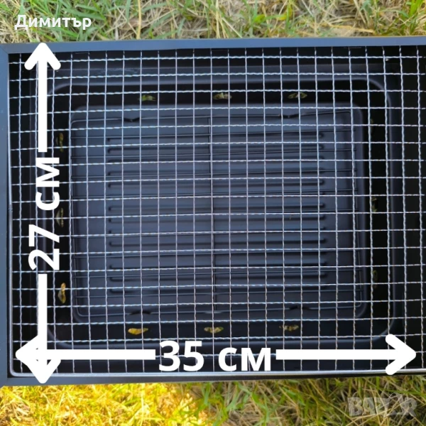 Модела е широк 27см , дължината му в 35см и с разпънати крака се повдига на 20см височина. Тавата му е с двойно дъно за да може да се предпази от прегаряне и да се подпомогне циркулацията на въздуха под дървените въглища.
