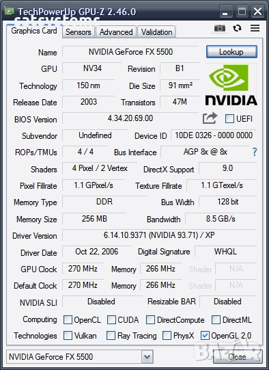 Chipset/GPU Model: NVidia GeForce FX5500/NV34