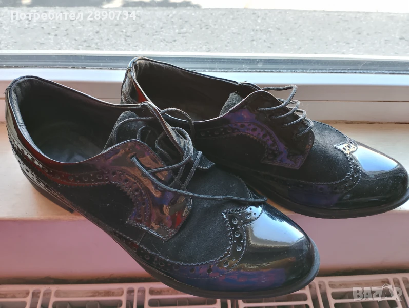 Обувките са носени, но са в много добро състояние. Български са, комбинация естествен лак и велур.