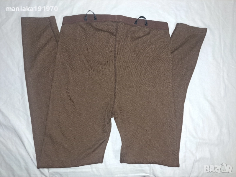 Топло и удобно, дълго бельо от смес от вълна и полиестер. Задържа въздуха, който тялото ви е затоплило, дори когато е влажно, като гарантира, че няма да замръзнете толкова лесно. Добра кройка, която не се "забавя" в коленете. Стегнат ластик на талията. Съхне бързо по тялото! Състав: 60% мериносова вълна, 40% полиестер