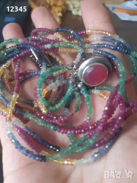 Огърлица естествени камъни, сребърна закопчалка- рубин → Обява 51394768