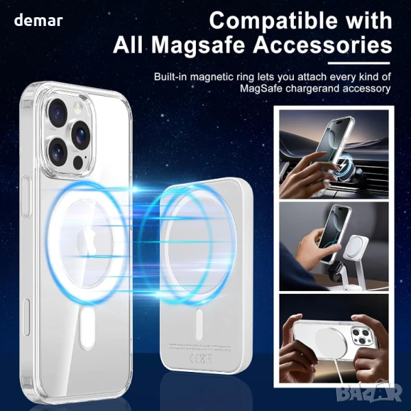 Този прозрачен акрилен калъф за телефон предлага защита от удари и надраскване с подсилени ъгли и кристално чисто покритие, което подчертава оригиналния дизайн на iPhone 16 Pro Max. Той разполага със силни вградени магнити за сигурно заключване MagSafe и по-бързо безжично зареждане, като същевременно остава тънък и лек за ежедневна употреба. Калъфът е лесен за инсталиране или сваляне за секунди, работи безпроблемно с стойки за кола и велосипед и има прецизни изрези за пълен достъп до всички бутони, портове и функции.