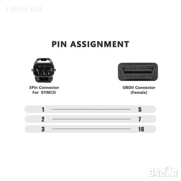 Диагностичният кабел 3PIN към OBD2 е предназначен за мотоциклети KYMCO, оборудвани с 3-пинов диагностичен порт. Позволява свързване към стандартни OBD2 устройства и извършване на базова диагностика.
