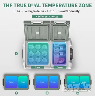 Нашият автомобилен хладилник е оборудван с голям опционален капацитет 40L, което ви позволява да се наслаждавате на охладени напитки и прясна храна по време на пътуването. Този 12-волтов автомобилен хладилник е проектиран с две врати с различна посока на отваряне, което ви улеснява да имате достъп от всякакъв ъгъл. Двузонен и независим контрол: