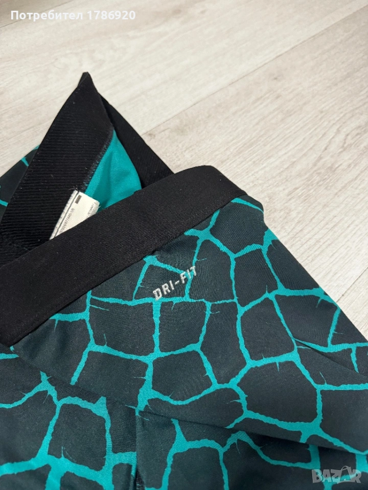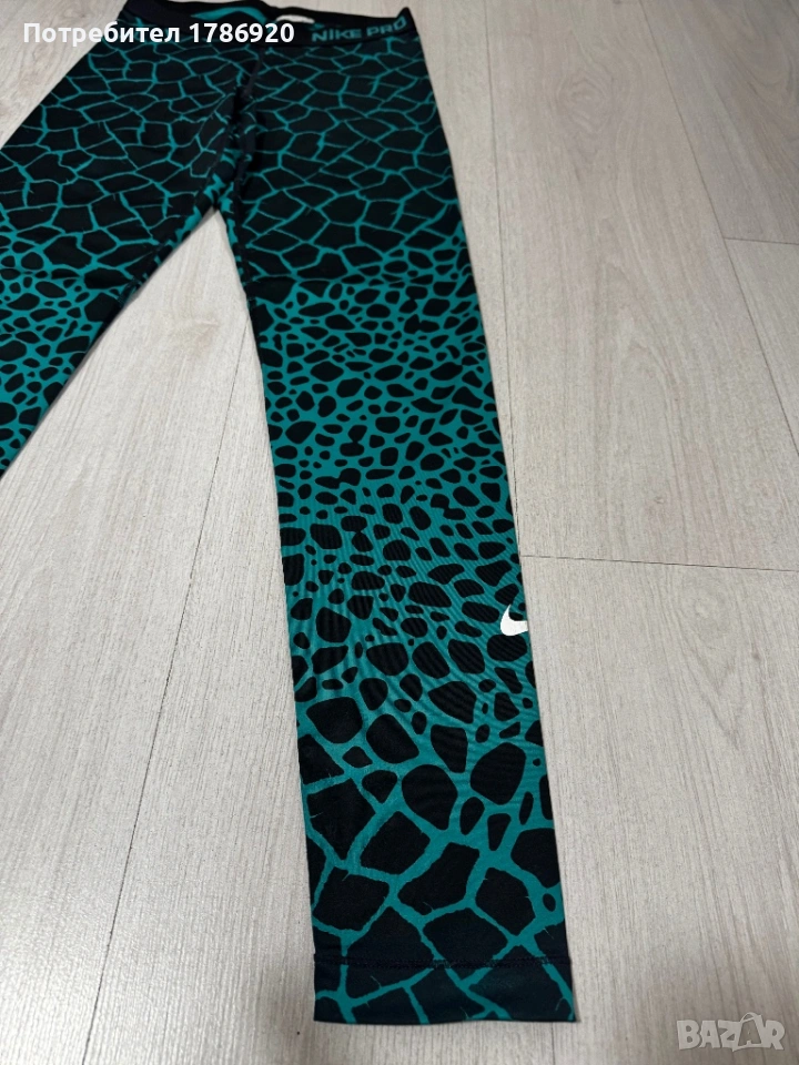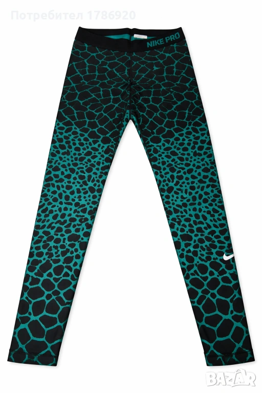 Оригинален Nike Pro спортен клин с ефектен дизайн в черно и тюркоаз. Перфектен за фитнес, бягане, йога или всякакви спортни дейности.