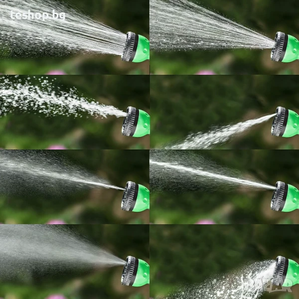 Многофункционална дюза с 8 степени, както и всички адаптери, включени в комплекта. Може да се удължи до 90 м с помощта на обикновена винтова система без допълнителен адаптер. Пример: 45 м = 30 м + 15 м или 60 м = 2 x 30 м и т.н.