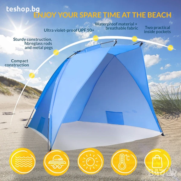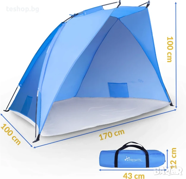 Плажна палатка TRESKO с чанта за носене, UV защита 50+, малък размер, водоустойчива и дишаща