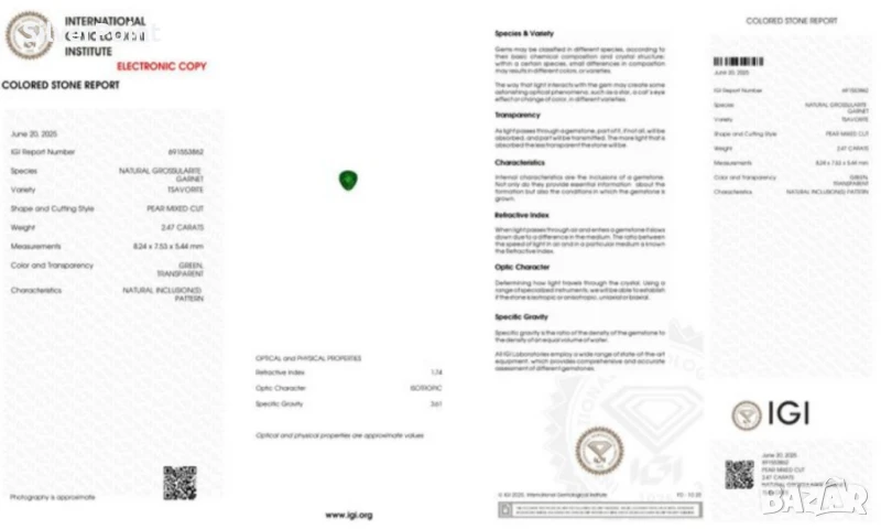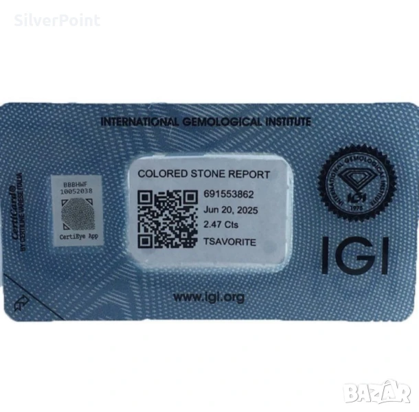 Цаворит голям със сертификат IGI → Обява 51399008