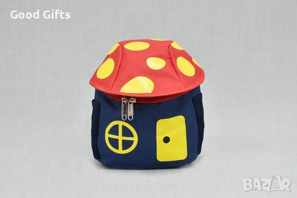 Детска текстилна раница Гъбка с джобове и дръжка за контрол – 18х23х8 см