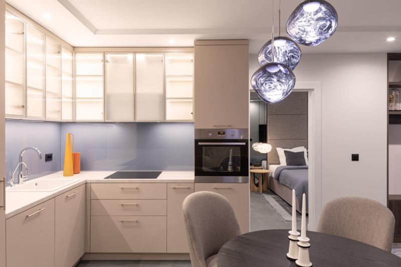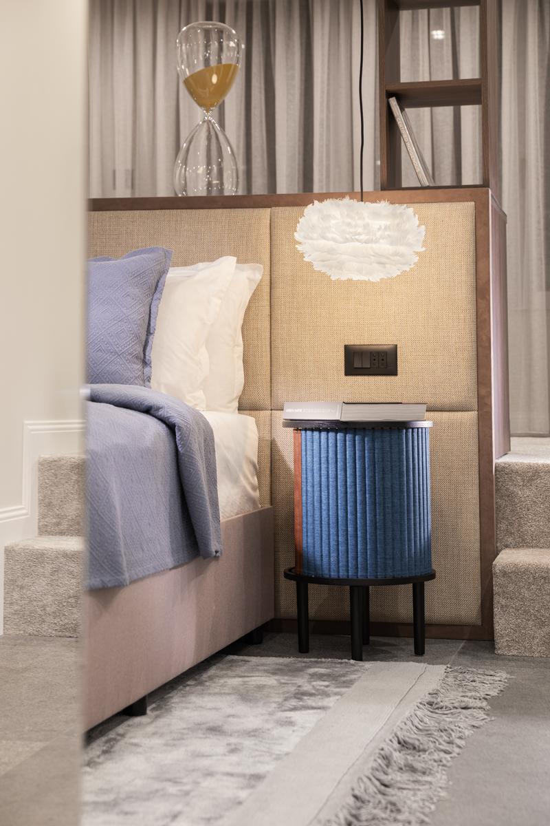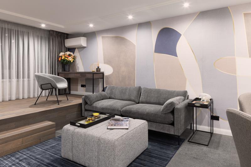 Жилището е изпълнено в стил Modern Eclectic и е проектирано с внимание към всеки детайл. Интериорът съчетава модерни цветове, текстури и дизайнерски решения, които обогатяват пространството с интересни контрасти, създавайки уютна атмосфера на хармонично и съвременно обзаведено помещение. Отчасти той се подчинява на минималистичните принципи като лаконичност на формите, отсъствие на пищна декорация и яснота на композицията като същевременно са преплетени артистични акценти в нежна цветова палитра. Фокусът попада върху тапета на Affreschi&Affreschi, който заема своето място в пространството като произведение на изкуството. Осветлението е изпълнено спрямо най-новия тренд в дизайна на осветителните тела и е дело на световноизвестния дизайнер Том Диксън, като допринася за елегантната визия на цялостния интериор.
