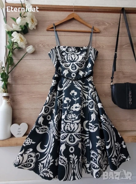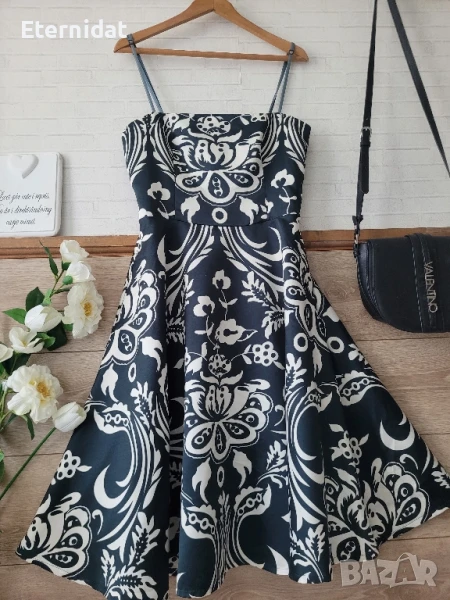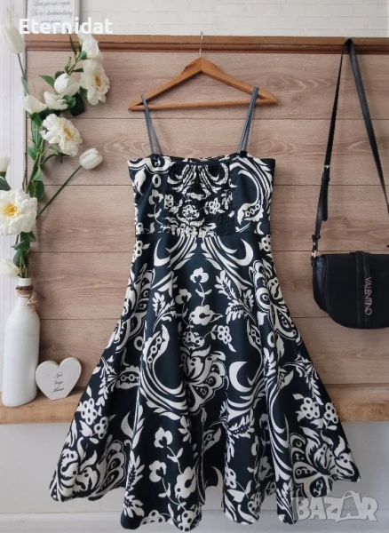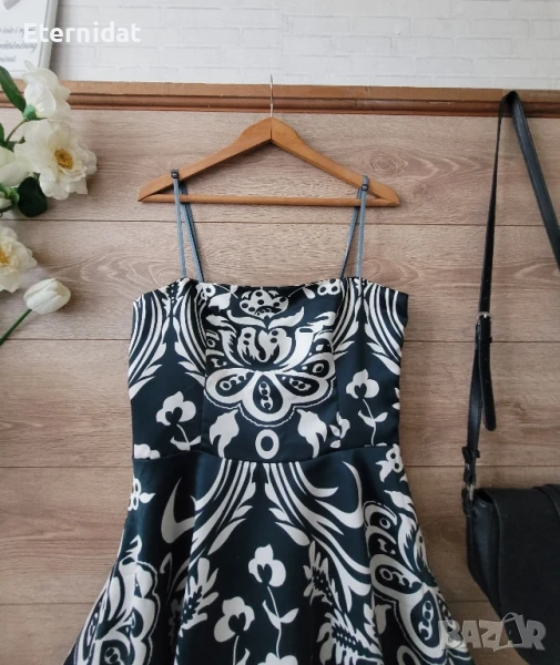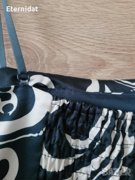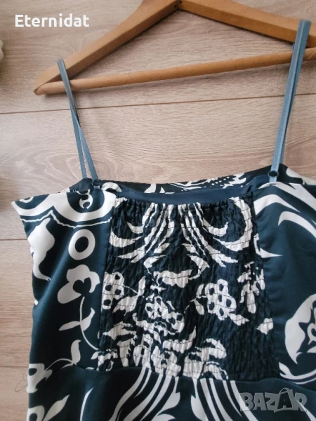 Разкошна лятна рокля на марката VILA. Допълнителна подплата, коригиращи презрамки, разкроена. Много лека и удобна материя . Размер Л Дълга 100см ( възможност за изменяне на дължината от презрамките), на гърба има ластик съответно и гръдната варира поради тази причина пт 92см до 102см Цена 49лв