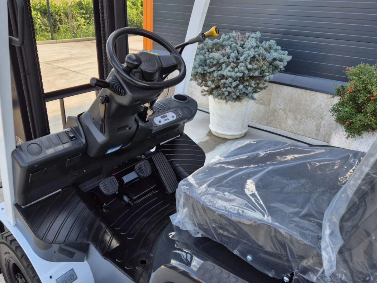 Автоматик. Височина на вдигане 3м. Нов внос от Япония с гарантиран произход. Закупен от представителство на TCM Tokio. Мотокара е в отлично техническо и визуално състояние. Напълно обслужен. Ново масло на двигател и хидравлика, нови филтри. Нови гуми. Безупречна работа на двигателя и ходова част, без никакви течове. Удобен за работа в ниски помещения. '' ТОЛИ АУТО'' предлага голяма гама от мотокари нов внос в наличност ( над 150 броя ), които са проверени и напълно обслужени в Япония. Допълнително са прегледани от наш екип и фирмата дава ГАРАНЦИЯ за безупречната работа на мотокарите. Ако изпитвате затруднения в избора си на мотокар, можете да се свържете с нас и да ви разясним характеристиката и предимствата на всяка една машина. Така ще ви помогнем в правилния избор. За нас е важно да ви предложим точната машина която да е подходяща в работата ви. Поддържаме в наличност резервни части и консумативи за всички модели японски мотокари. Фирмата предлага изгоден лизинг с 0, 7% месечна лихва. Осигуряваме транспорт до всяка точка на България. Коментар на цената само на място. Цената е без ДДС. Издаваме фактура.