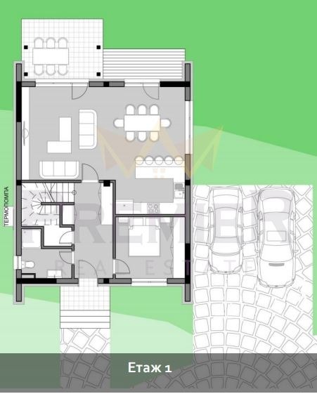 Имоти Премиер представя на Вашето внимание двуетажна новострояща се къща в затворен комплекс в с.Нови Хан, с площ от 269кв. и двор 465кв.м.