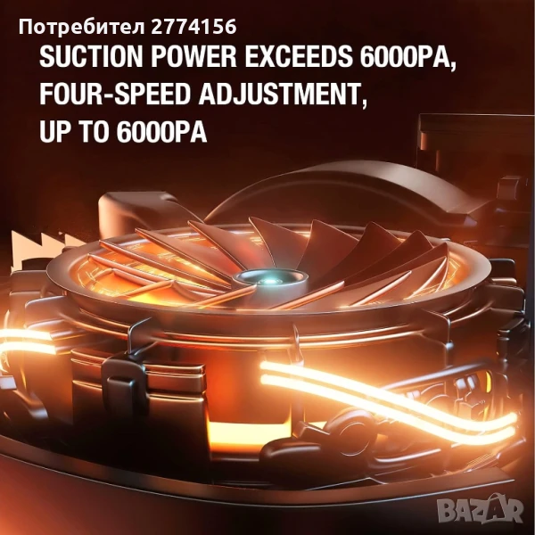 • Мощно засмукване до 6000Pa за ефективно почистване на прах, косми и замърсявания