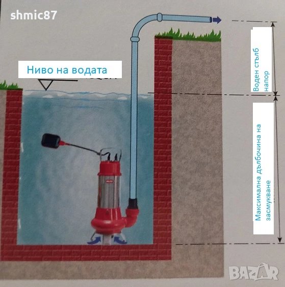 - максимален напор /воден стълб/: 9м