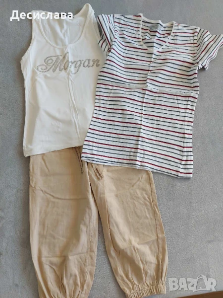 Шалварките са на марката Terra Nova, тип ленен плат. Блузката и потника са размер S, с еластичност на плата.