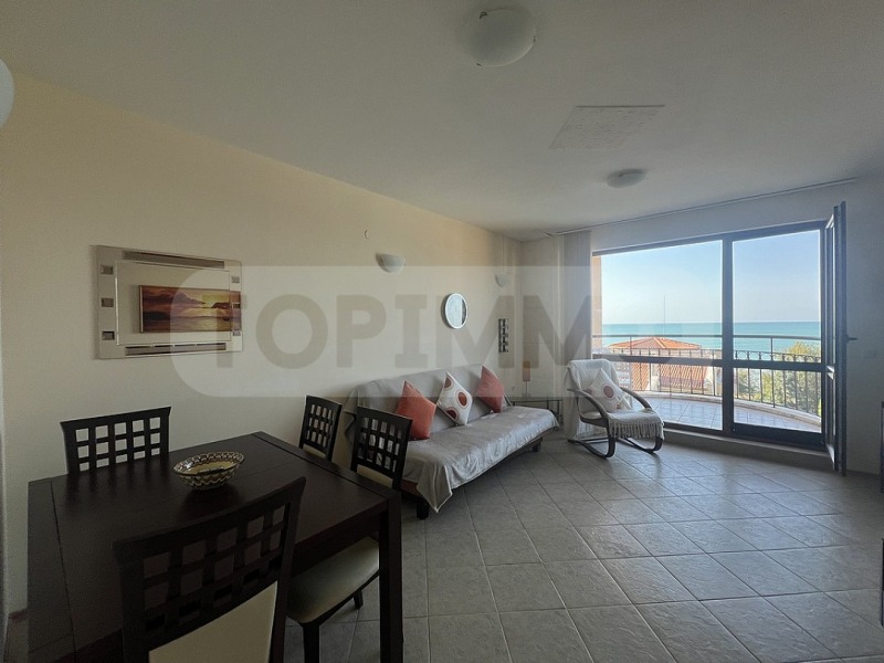 С площ от 61.4 кв.м. чиста площ и 12,19 кв.м. идеални части от общите части и прилежащо складово помещение от 5,6 кв.м. Апартаментът е напълно обзаведен и се състои от дневна с кухненска част и тераса с гледка към морето, спалня с балкон и баня с тоалетна.