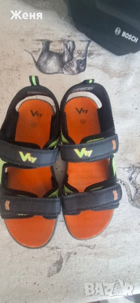 Детски сандали, обува и два пъти.Номер 35, стелка 23 см.Дънкови панталонки, обувани веднъж, мека и еластична материя, размер 132-138см.